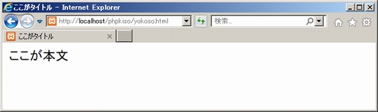 ファイルをコピーすると「hina - コピー.html」のようなファイルができますので名前を変更します。この後の作業で使うため「yokoso.html」と変更しましょう。ファイル名の変更はエクスプローラーでできます。 localhostから確認それではyokoso.htmlがどう表示されるか確認します。この時やってはいけないのはダブルクリック。やると壊れることはありませんが、それではサーバー経由で表示できているかどうか確かめられません。そこでブラウザを起動しアドレスバーに以下のURLを入力します。準備編の資料で、http://localhost/ が、Xamppフォルダの中の「htdocsフォルダ」を参照するように設定されていると説明しました。そしてその中の「phpkisoフォルダ」にひな形ファイルと今回のyokoso.htmlを作りました。その場合は、http://localhost/ に続けて phpkiso/yokoso.html と設定することでファイルが参照できます。コンピュータ内の保存フォルダ(ディレクトリ)と、URLとの対応関係について確認しておいて下さい。 そして正常にアクセスできれば、次のように表示されるはずです。URLがlocalhost~となっているところをよく見て下さい。 ![]() HTMLやCSSの動作確認ならlocalhost経由じゃなくてもきちんと表示されますが、PHPになると正常には表示されなくなります。準備編でも書きましたが、PHPはサーバー側で処理された結果だけがブラウザに送られることになっているため、サーバー経由で表示しないと処理前のファイルがブラウザに届いてしまい正常に表示されなくなる、ということです。 ということで、続けてyokoso.htmlを修正してHTMLの基本を手っ取り早く確認しましょう。 >>次のページへ進む